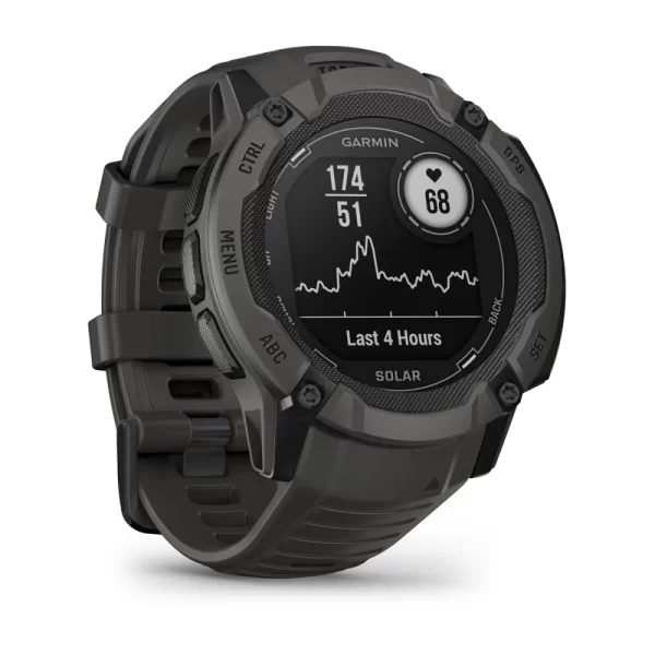 Прочные GPS-смарт часы Garmin Instinct 2 Solar графитового цвета.